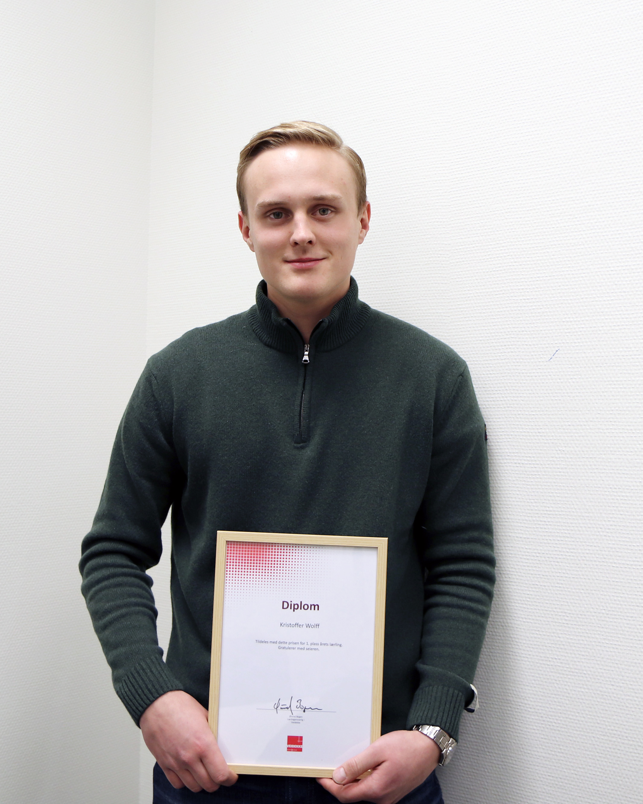 Som årets lærling i Veidekke fikk Kristoffer Wolff overrakt en sjekk på 15.000,- kroner av konserndirektør Anne Thorbjørnsen på Veidekkes lærlingedager i Oslo. Asfaltlærling Christian Listou fra Hønefoss og betonglærling Marcus Losen Schjølberg fra Gauldal i Melhus var med helt til finalerunden og fikk hver sin sjekk på 7.500,- kroner.