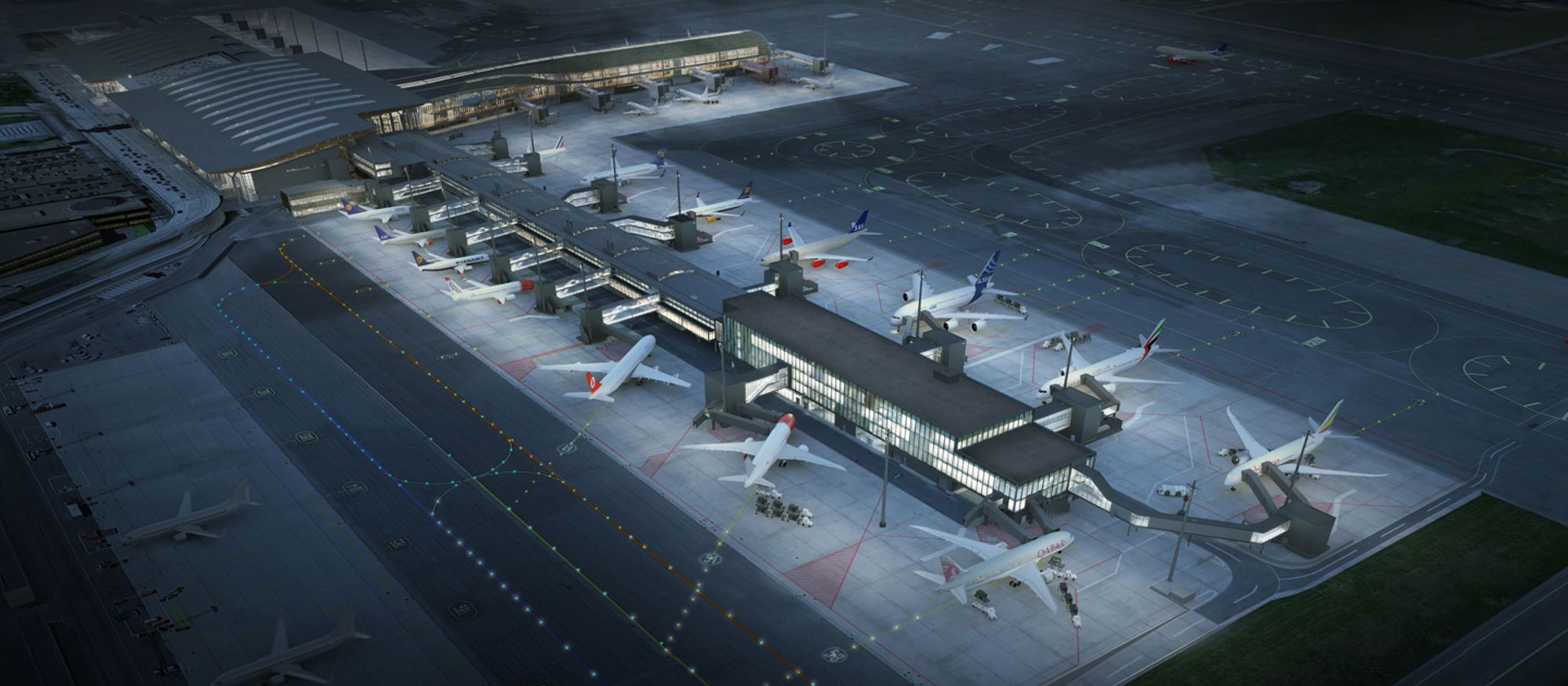 Vedlagt illustrasjon fra Nordic - Office of Architecture viser Oslo lufthavn slik den blir etter utvidelsen.
