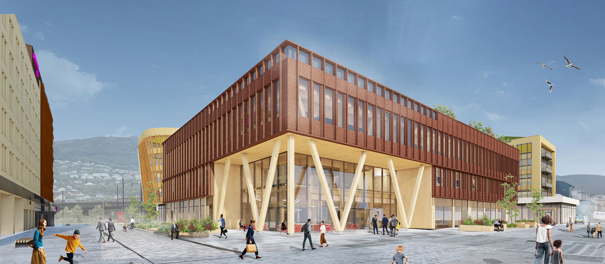 Prosjektet har fått navnet Fenderen og får en unik beliggenhet ved vannkanten i hjertet av Solheimsviken i Bergen. Bygget blir i massivtre og får tre etasjer pluss kjeller på totalt cirka 7.800 m2 og får en energimiks av solceller, elektrisitet, fjernvarme og sjøvann. Utforming og materialvalg er gjort for å sikre bærekraft i hele byggets levetid fra oppføringen til muligheten for ombygging og gjenbruk av bygningsdeler ved rivning. Bygget skal klassifiseres etter standarden BREEAM Outstanding (Paris Proof).