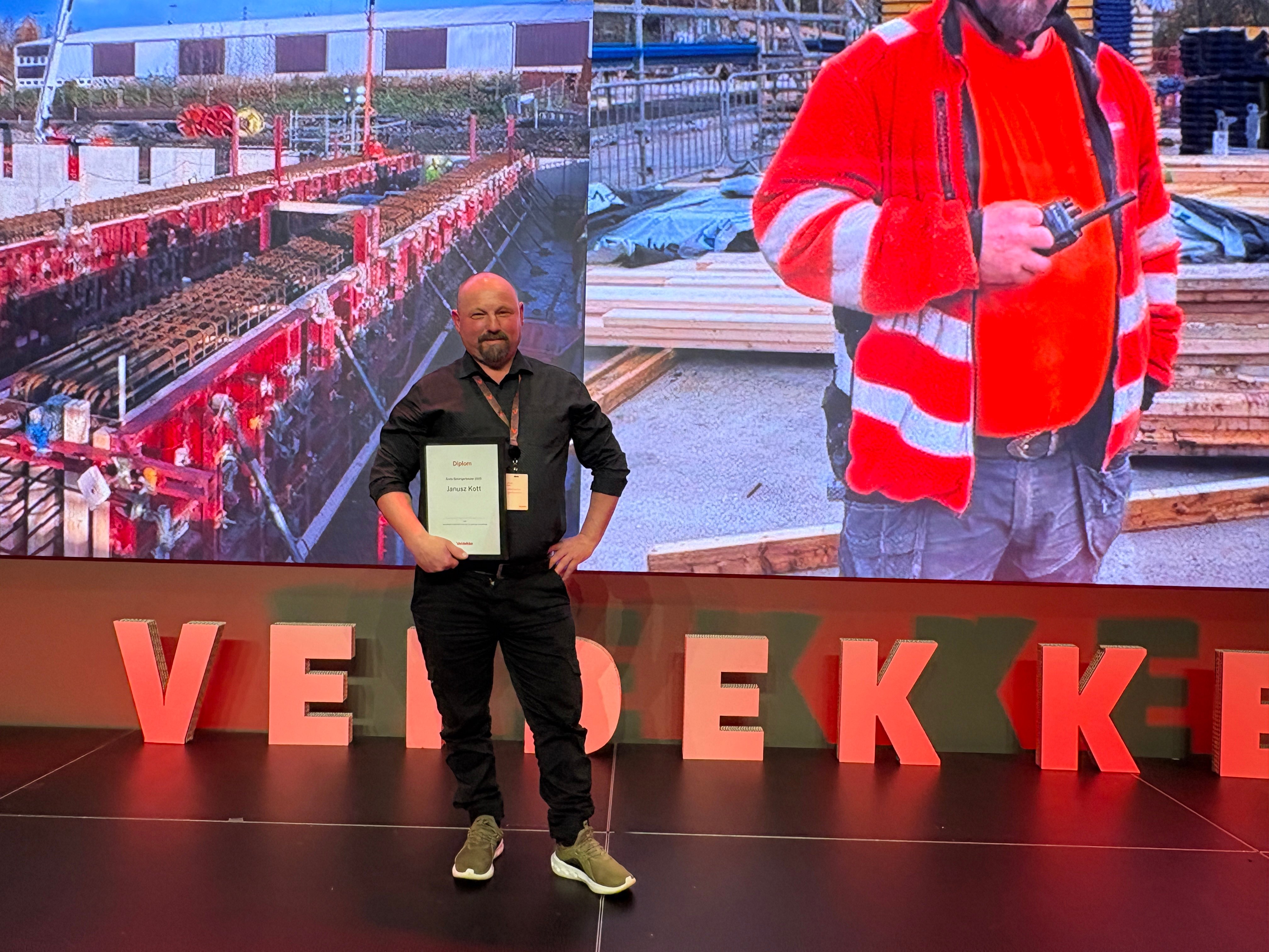 Janusz Kott (50) fra Oslo ble kåret til årets betongarbeider i Veidekke 2025. Han har jobbet i Veidekke i 14 år, og beskrives av kolleger som en utrolig bra kar med de rette holdningene til gjennomføring og kvalitet på alt arbeid som skal utføres. Om det er stort eller smått, vanskelig eller lett, gjør han arbeidet med flid og er alltid pålitelig. Janusz har bidratt i flere kompliserte betongprosjekter og utfører alle typer arbeid med stolthet og presisjon, skriver juryen.