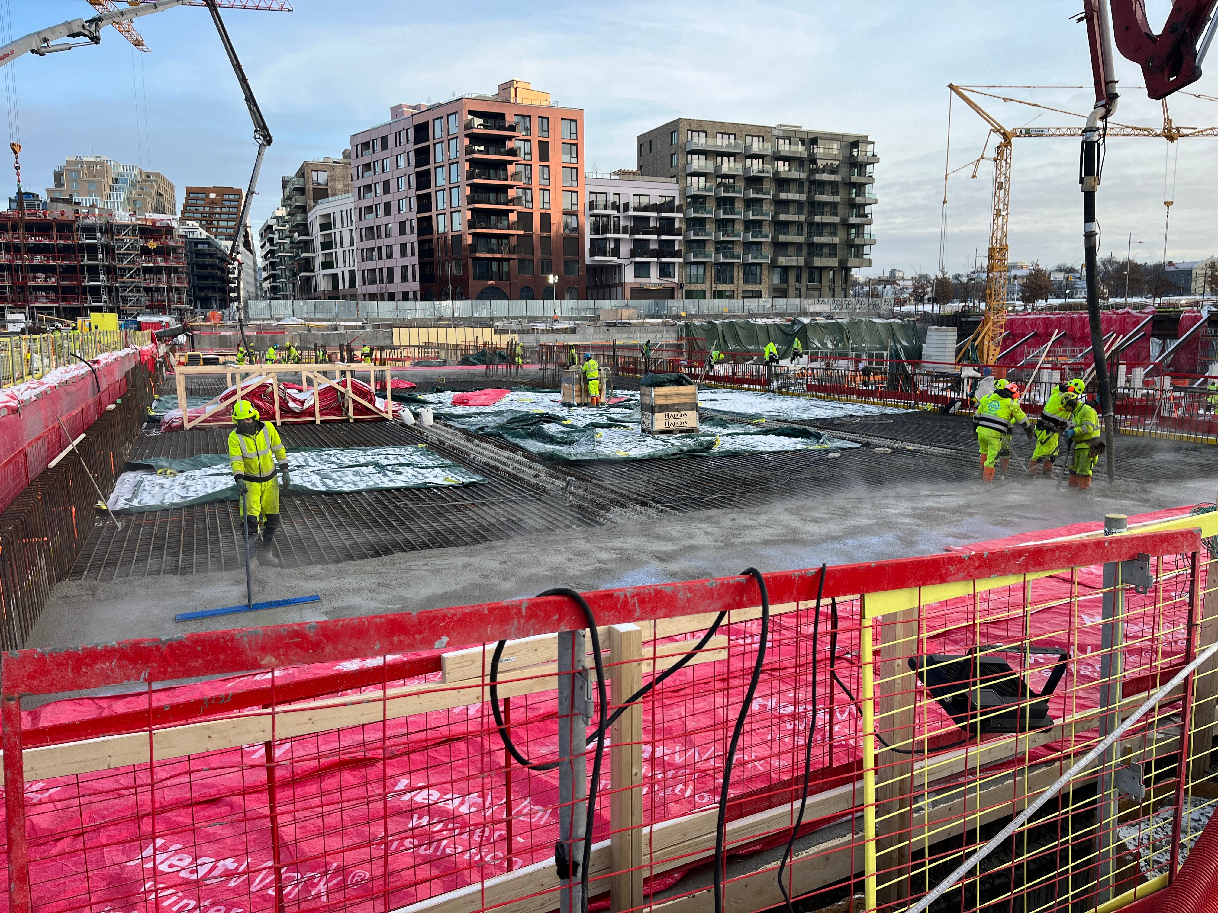 I Bjørvika bygger Veidekke Bygg Oslo 246 boliger og næringsarealer for Oslo S Utvikling. Prosjektet har gjennomført banebrytende og grundig dokumentert testing, og de har brukt innovative bærekraftige løsninger. Det er f.eks. støpt med mye ekstrem lavkarbon betong, tilsatt basaltfiber for å redusere armering, støpt med 40 % resirkulert betong som tilslag, og de har utviklet infrarøde ovner for å varme støp med strøm som energikilde. Tross kald vinter klarte de å utføre en dekkestøp i 19 kuldegrader med lavkarbon ekstrem uten store utfordringer.