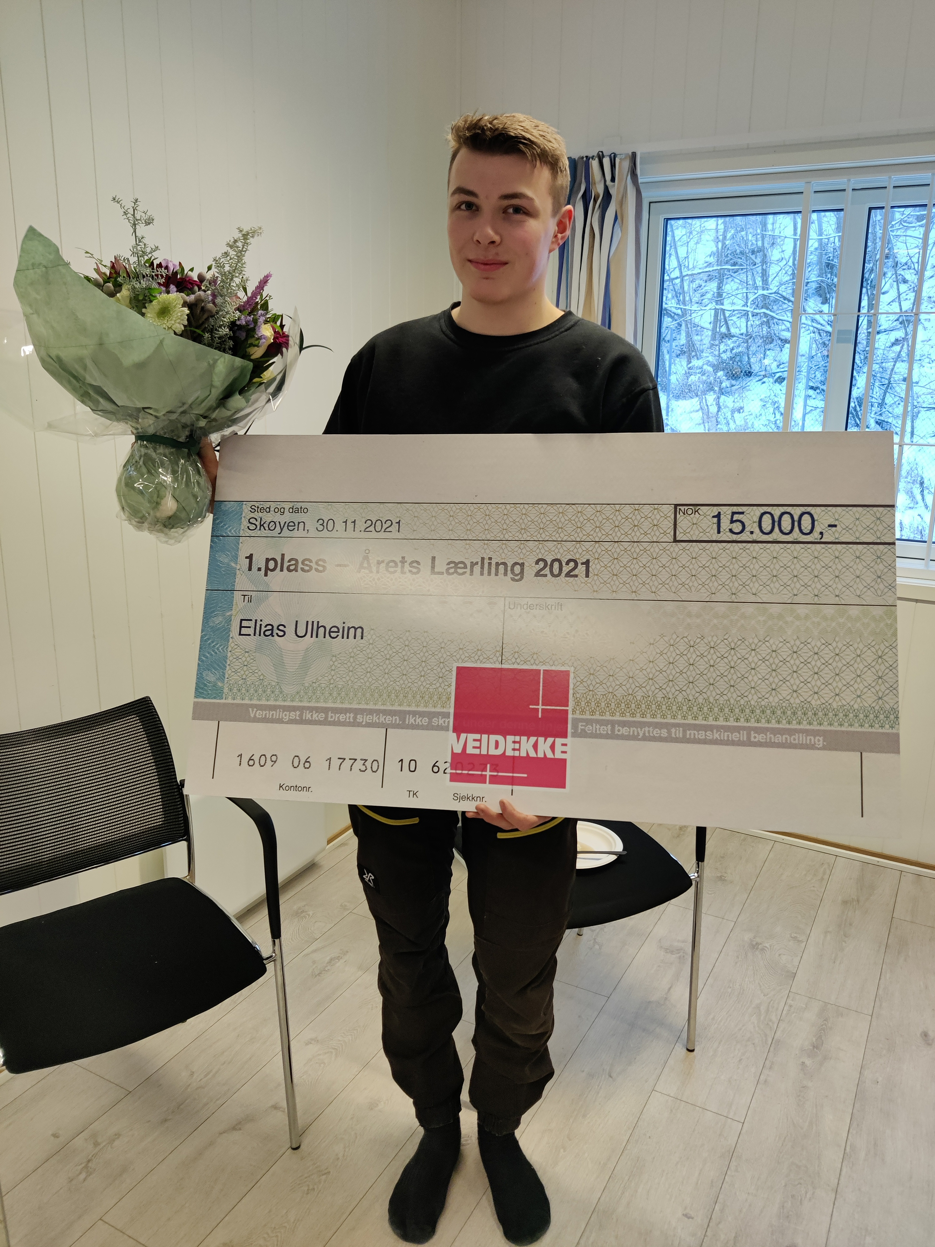 - Elias Ulheim lærer veldig fort. Han er ikke redd for å prøve nye ting, og tar alle utfordringer på strak arm. Han søker informasjon og kunnskap for å forberede seg, planlegger alltid godt og vet hva som skal skje. Elias står på og trår til om han ser andre trenger hjelp. Han er bestandig positiv og en gledesspreder i arbeidslaget. Er han uenig i noe sier han fra, han er en veldig moden, ansvarsfull og selvstendig ung mann ifølge kollegene og instruktøren hans, forteller kommunikasjonssjef Helge Dieset i Veidekke.