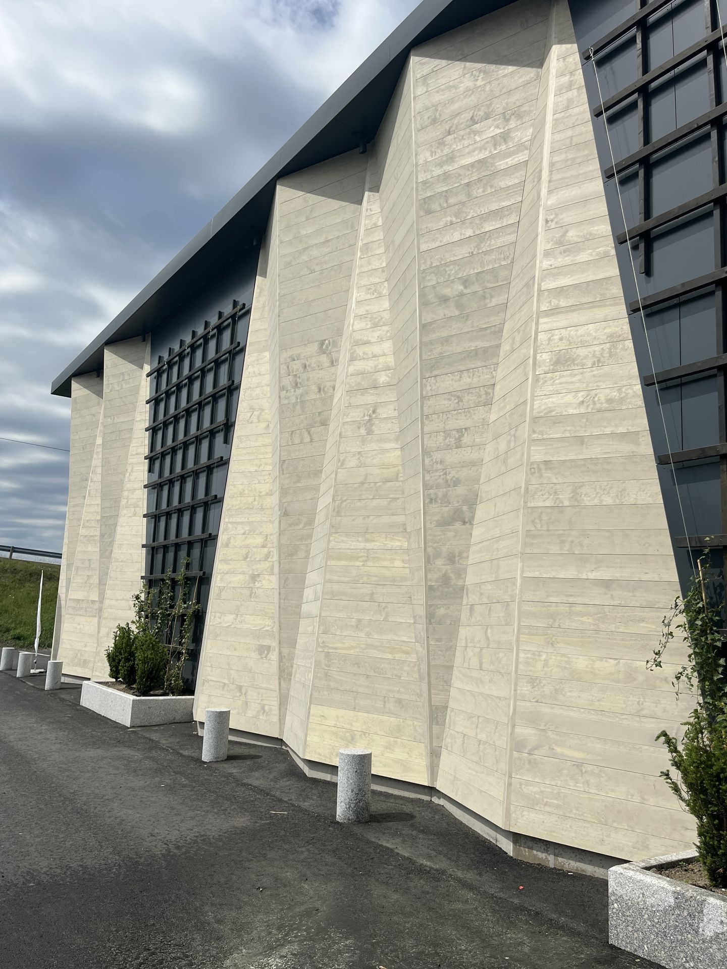 Bygget har en stålstruktur med prefabrikkerte yttervegger på hele 7 meters høyde. Disse ble kledd med Rockpanel-plater og spesialtilpassede trekantelementer i Accoya. Arbeidet krevde høy presisjon for å oppnå et sluttresultat som møter både kundens og brukernes høye krav.